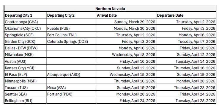 Can't find the city and date you want on our master calendar? Checkout our air charter schedule below for additional flights to the Caesars Entertainment Properties from other US cities.