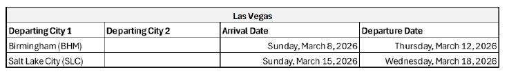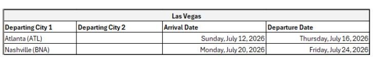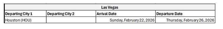 Can't find the city and date you want on our master calendar? Checkout our air charter schedule below for additional flights to the Caesars Entertainment Properties from other US cities.